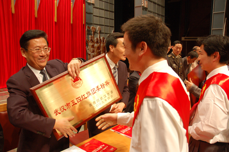 (图为省委副书记、武汉市委书记杨松为我校团委颁奖)