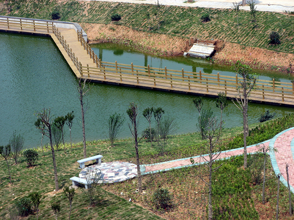 一泓碧池绿影连天,波光潋滟沁人心脾。日前,我校人工湖——鹤鸣湖建成,校园新添秀丽水景。