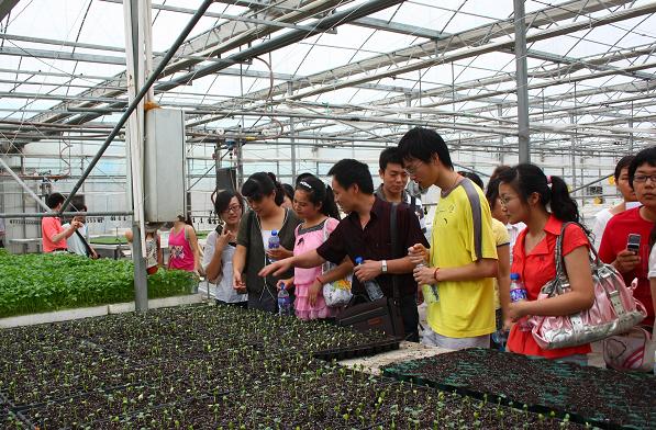 在湖北省最大的种苗企业维尔福公司,师生们看到种苗培育的整体流程,国际领先的“穴盘育苗”技术培育出的小种苗,让大家爱不释手;在汉口精武食品工业园,师生们了解种鸭被加工成为精武鸭食品的过程之余,也禁不住美食的诱惑,纷纷购买品尝;作为我校的社会实践基地,高车村尤其收到师生的关注。整洁的村容村貌,优美的人居环境,日渐丰富的村民文体生活,令大家大开眼界,深受鼓舞;走进中国家具CED招商中心,就像步入了一个富丽堂皇、豪华现代的商业会场,络绎不绝的人群潜藏着无限的商机,师生们也在人群中饶有兴趣地了解了家居卖场等相关情况。