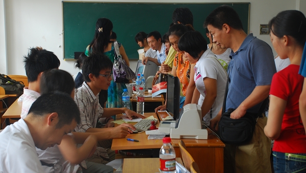 楼道中,广场上,到处都有工作人员为新生们耐心解释报道流程。财务室里,工作人员快速开出各种缴费单据,服务热情且高效,现场繁忙而有序。为方便新生生活,校后勤集团设置了便利摊位,提供棉絮、水瓶、脸盆等生活用品。学工部将绿色通道搬到了致远楼下,帮助贫困家庭学生更直接方便地办理各种手续。
