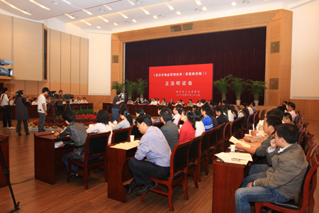 今年3月,武汉市法制办首次就《条例》草案征集市民意见,备受社会关注。6月底,草案获市政府常务会原则通过。7月22日,该市人大常委会对《条例》草案进行一审,共提出79条意见和建议。8月,市人大常委会主任会议认为,该条例关系千家万户利益,决定召开立法听证会。