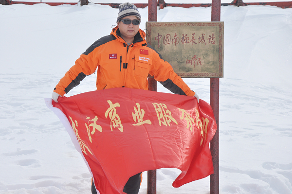 经过一个月的海上航行,我校师生已抵达南极,教师戴涛已登上长城站,并在该站开始餐饮服务管理。今天,戴涛老师发来照片,鲜艳的校旗在冰雪世界里迎风飘扬。