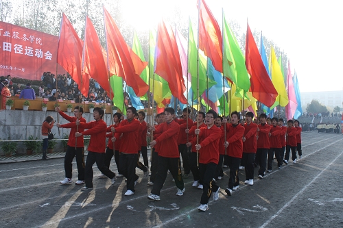 11月23日上午,冬日暖阳普照大地。我校2009年田径运动会伴着艳阳在南区体育场举行,校领导张元树、王京章、刘萌、徐俊才出席了开幕式,副院长王清华主持开幕式。