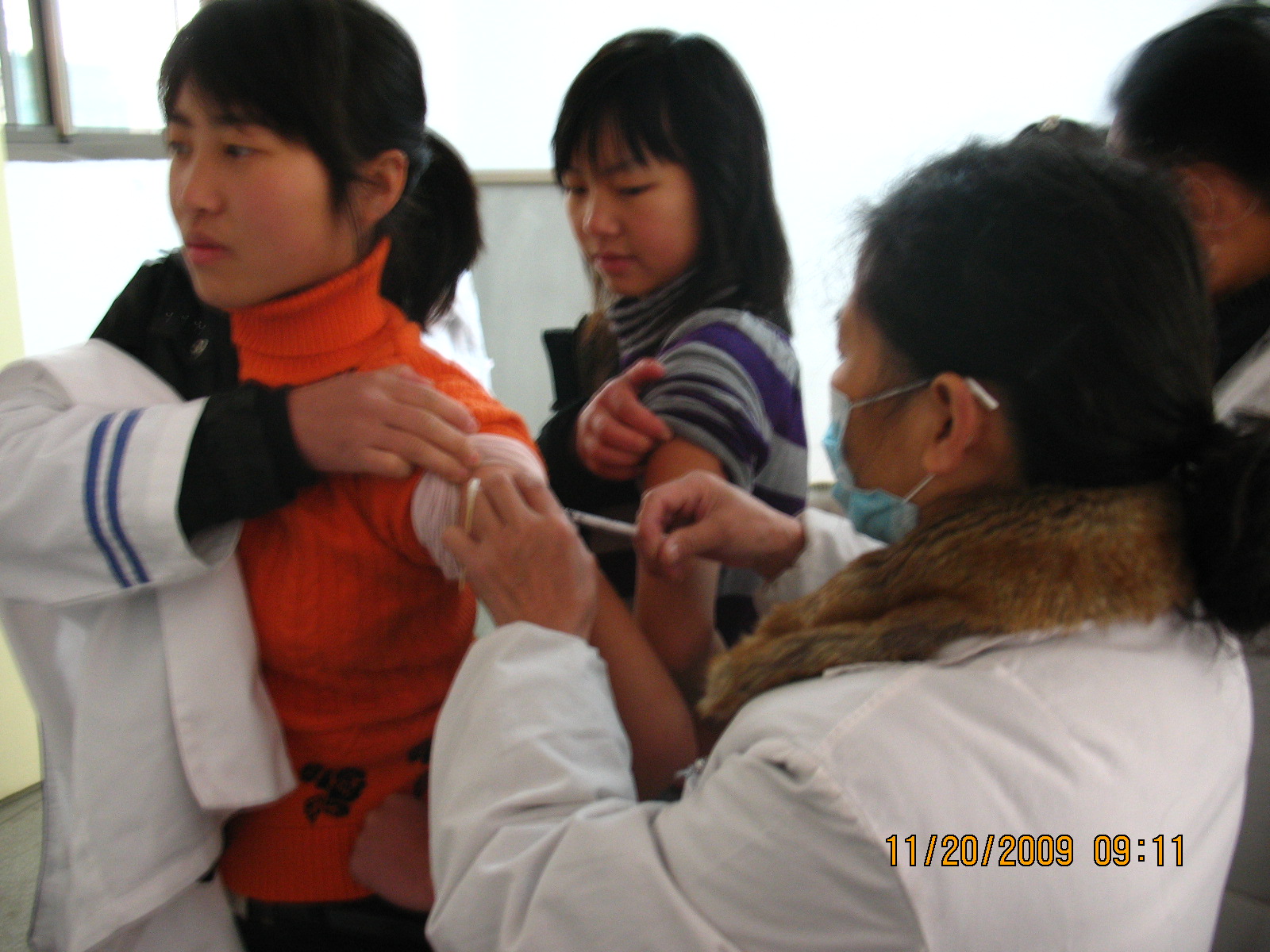校领导对疫苗注射高度重视,副院长王京章、王清华亲自指挥。后勤集团召开了各院系“甲流”疫苗接种工作会议,传达市流感防控指挥部关于疫苗接种的有关指示精神,医务人员从疫苗运送、存放到温度监测、使用等各个环节都进行了规范操作,层层把关,确保疫苗接种工作安全顺利进行。