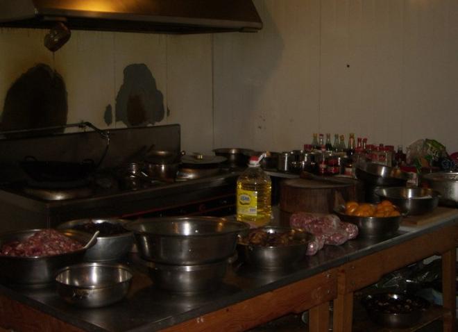菜肴还是以肉食和脱水蔬菜为主。脱水蔬菜有草头、荠菜等,冰冻蔬菜有毛豆、蚕豆等。火是用的煤气罐。