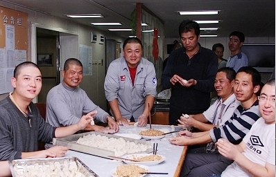 到达中山站之前,船上曾组织了一次大规模的包饺子活动,所有队员一起动手。澳大利亚机组人员也过来帮忙,还连吃了两碗饺子,一个劲儿称赞好吃,说他准备找我们谈一谈,仔细问问饺子的做法。