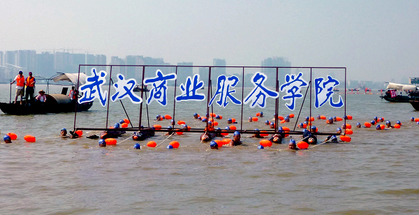 我校参加武汉国际横渡长江节,作为渡江的12个方队,我校师生在大江中展现英姿。