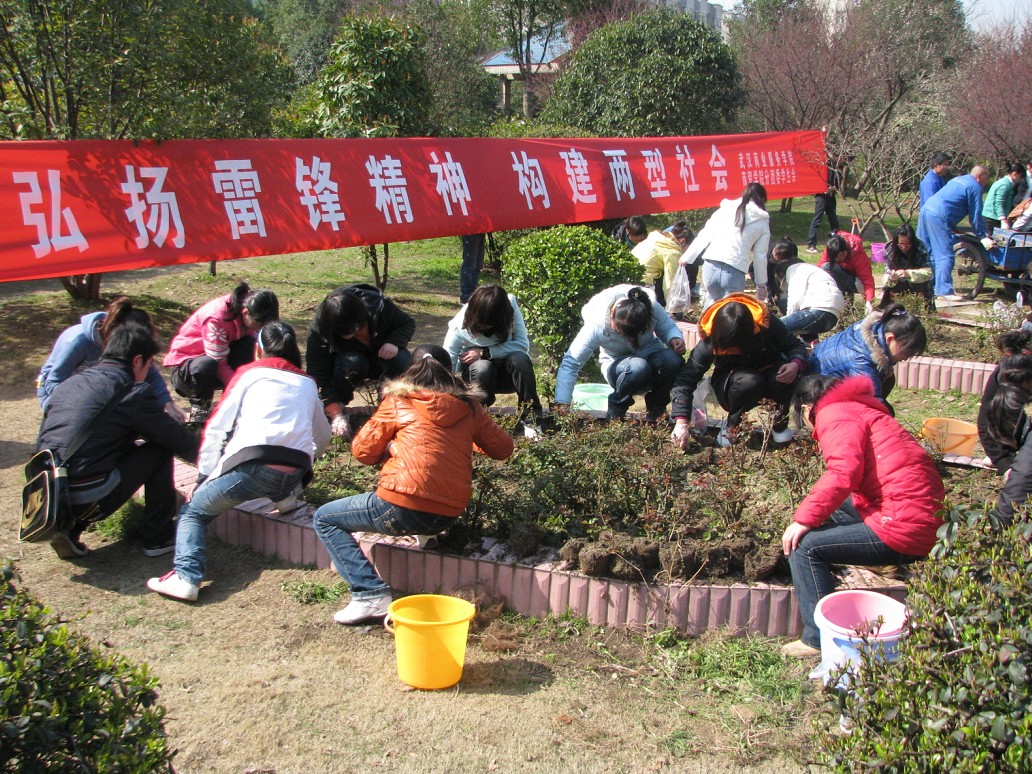 上午10点,车刚到百步亭社区停稳,大家就立马戴上手套,五六个人一组,开始挖土、拔草,提水等,一派热火朝天的景象。不到20分钟的时间,就和百步亭物业集团工作人员栽好了当天要栽中的月季花。活动完后大家纷纷表示,通过组织这次认养樟树的活动,既锻炼了自己又通过自己的行动带动了社区居民,增强居民的环保意识。