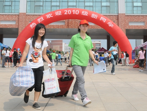 为了能使大一新生尽快地融入校园,各院系也都做出了细致周到的安排。旅游系在每一辆去火车站接新生的车上安排旅游管理专业的志愿者为新生介绍武汉、介绍校园。她们热情的笑容与亲切的话语使长途劳顿的新生和家长倍感轻松和惬意。