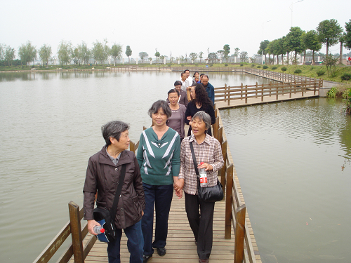 大家兴致勃勃地参观了体育场、图书馆、应用艺术系展厅、机电实训中心、毓山和鹤鸣湖。看着日新月异、崭新的校园,老同志们心情激动,纷纷在校园内留影。