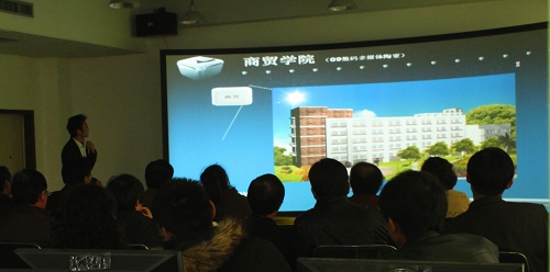 本网讯 见过人扭腰,有见过袋子扭腰、跳水吗?武松打虎的故事用flash二维动画做出来又是怎么样的效果呢?用3D模型出来的学校又是怎样的呢?11月25日下午,在南2教学楼101教室,信息工程系“一系一品”以“奔腾不息,e鸣惊人”展开,学生们用自己的智慧结合多媒体技术实现了“袋子跳舞”的奇迹。党委书记郑光喜书记、副书记徐俊才书记,以及各系部负责人到会与同学生们一起欣赏了作品。