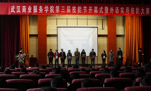 开幕式结束后,应用外语系承办了外语实用技能大赛拉开帷幕。外语系的同学们穿上整洁的职业装,仿真表演了宾馆入住、会务接待、餐厅服务、旅游服务和商务服务等工作场景,赢得了现场同学的热烈掌声。