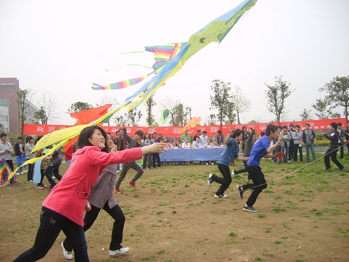 本网讯 校园四月春光好,忙趁东风放纸鸢。4月8日,我校商贸学院第三届“我心飞翔”风筝设计制作大赛在北区运动场举行。一只只摇曳的风筝,装点出校园美丽的春色。