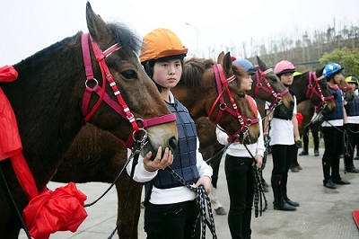 学生骑师在新建成的练马场上一展骑术