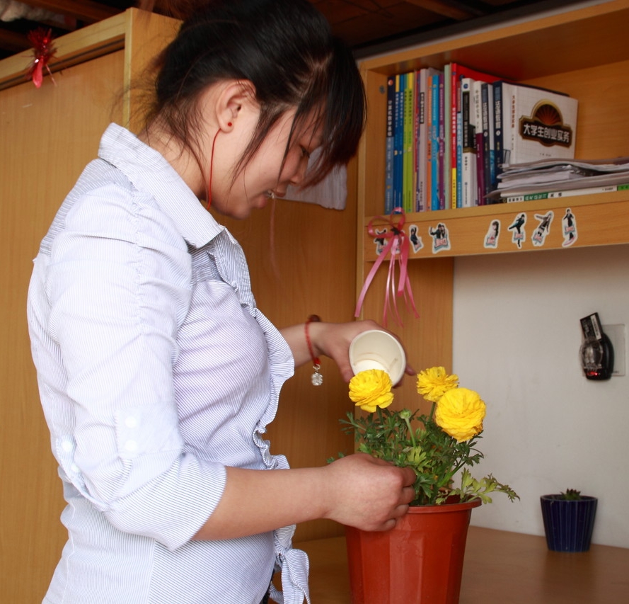 本网讯  在武汉商业服务学院学生宿舍,养花弄草之风悄然兴起,郁郁葱葱的花草取代了以前墙上贴的明星照,构成寝室别样风景。