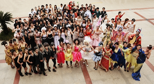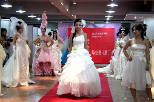 本网讯 4月21日下午,应用艺术系2011届形象设计专业、服装设计专业、庆典礼仪策划专业毕业生设计作品展举行,120名学生“模特”走上T台展示风采。