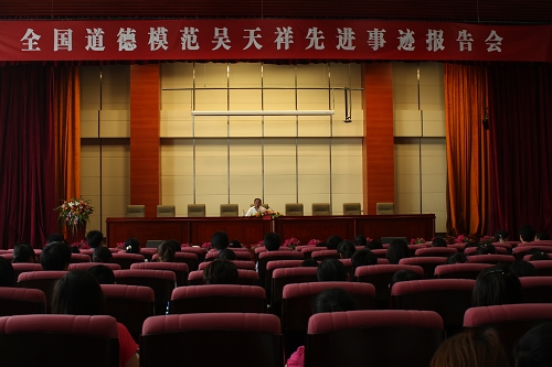 本网讯 4月29日下午,全国首届道德模范吴天祥同志应邀做客我校,为我校师生带来“弘扬五四精神,争做时代青年”主题报告。整个图书馆学术报告厅座无虚席,吴天祥同志朴实生动的报告博得了在场师生声阵阵掌声,在近一个小时的报告中大家受到了一次道德的洗礼。