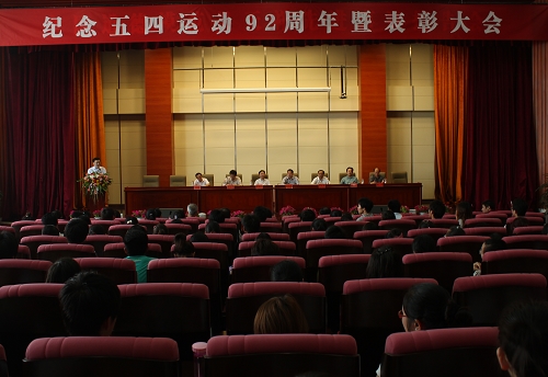 本网讯 4月29日,我校纪念“五四”运动92周年暨表彰大会在图书馆学术报告厅举行。党委书记郑光喜、院长张元树、副院长王京章、党委副书记徐俊才等出席了会议,向全校广大团员青年致以节日的热烈祝贺。团委书记叶平浩主持了大会。