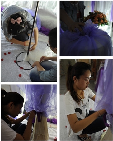 据了解,该校庆典礼仪策划专业的学生在结束了大一的基础理论课程后,便开始进入紧张又充满挑战的专业课程,成立近50年以来,武汉商业服务学院一直以实操性纳入教学重点,新开的庆典礼仪专业也不例外,为了让同学们能“身临其境”,艺术系特别安排了一个实操教室,并且购置了一批婚庆礼仪庆典现场布置的道具供学生使用。