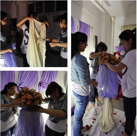 记者在采访期间看到几个同学正在进行专业训练,他们表示,有时为了能够做出符合自己创意的现场布置,她们都会自费去校外采购用具,“每次看到自己手绘的效果图能够成真时,就会充满成就感。”