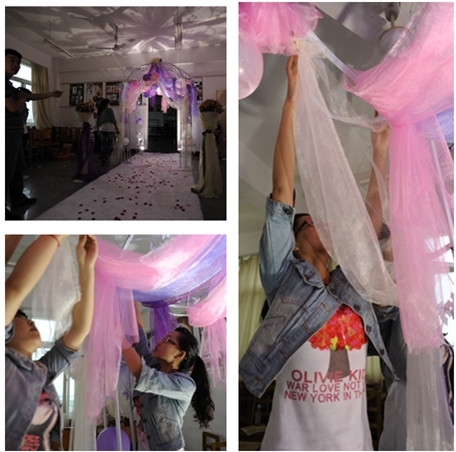 记者随后随叶老师到实训室时,叶老师特别介绍,这些道具的购买也不是马虎随便的,比如这些花厅和路影,都是以铁艺为主,方便学生拆卸或是改变造型,开发出新的创意。“现在我们大二的学生基本上可以以小组的形式完成一个小型的婚礼策划、现场布置以及督导服务。”