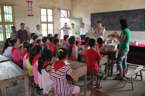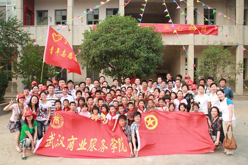 20日中午,30名师生从学校出发,带着崭新的书籍、文具来到位于大别山深处的大悟县芳畈镇新屋小学.新屋小学共有学生52人,办学条件较差。捐赠仪式上,青年师生代表把这些文具图书等送到了新屋小学孩子们的手中,大悟团县委书记及新屋小学校长参加了捐赠仪式,对我校师生表示感谢。在新屋小学,师生们还与新屋小学的学生开展了英语趣味课堂、素质拓展游戏等项目。