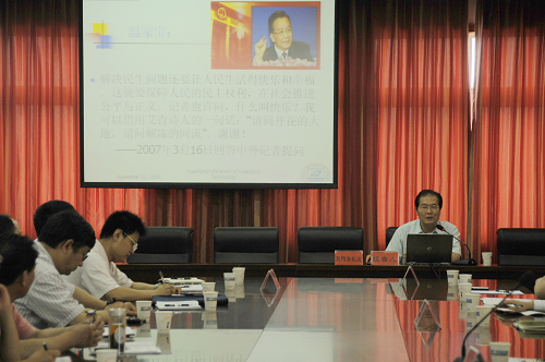 本网讯 6月17日上午,我校与武汉城市职业学院党委中心组理论联学暨纪念建党九十周年专场报告举行,华中科技大学党委副书记欧阳康教授应邀作了题为《尊严与幸福——以人为本执政理念的新境界》的报告,受到热烈欢迎。
