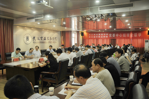 我校党委书记郑光喜同志主持联学。两校党委中心组成员及我校处级以上干部参加了联学。