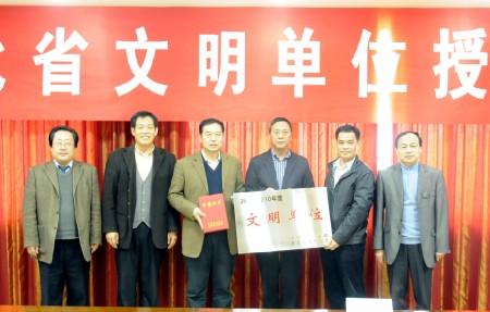 党委书记郑光喜、院长邓院方、党委副书记徐俊才同志和校精神文明建设指导委员会部分成员参加授牌仪式。郑光喜、邓院方接过省委、省政府颁发的“2009年至2010年湖北省文明单位”牌匾和证书。