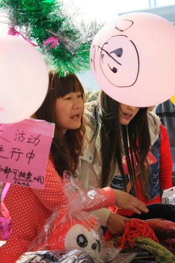“来看看吧,这个小挂件蛮好看的。”“这位同学,这条围脖蛮适合你的。”人力资源专业的摊位前挤满了买小饰品的同学,小饰品十分精美,价格也挺实惠。