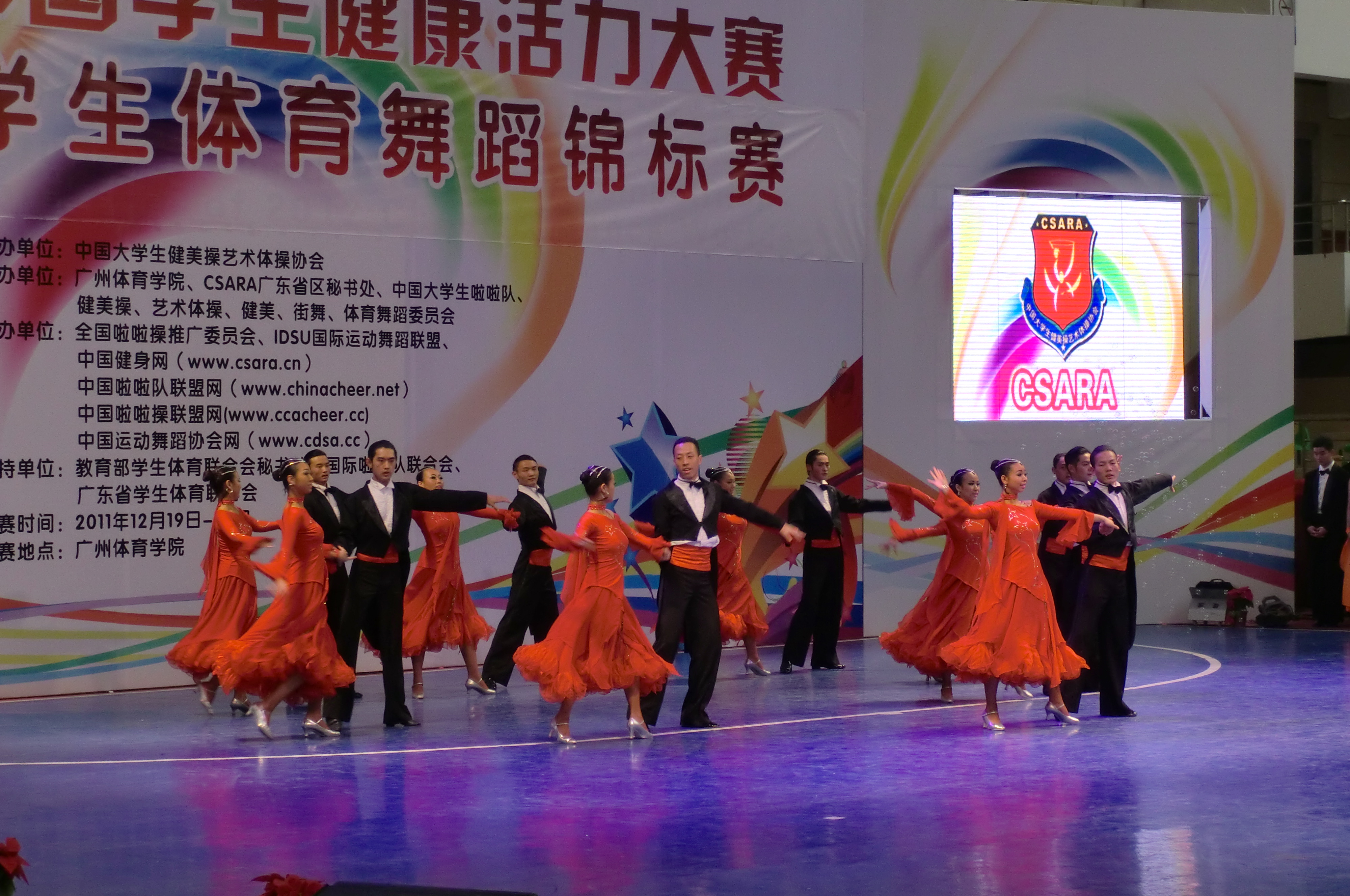 上图:武汉商院体育舞蹈队在2011年中国学生体育舞蹈锦标赛上比拼技艺。