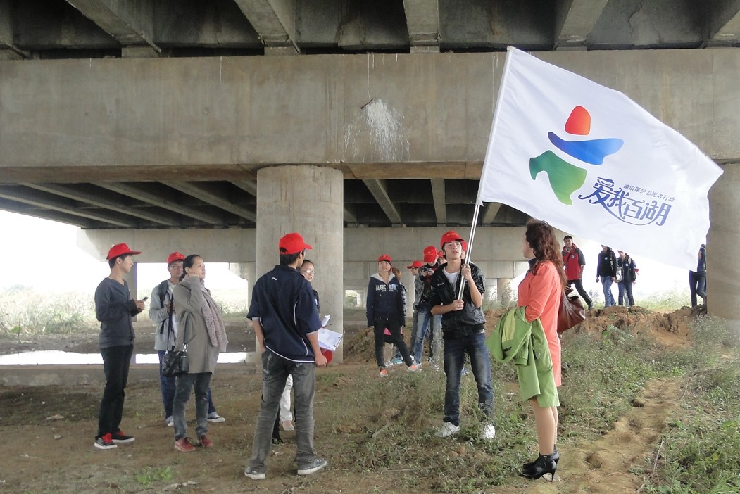 一群人,一个湖,一座城。2010年7月,武汉有关媒体和部门发起“爱我百湖”大型公益行动。在启动仪式上,我校志愿者代表高校学生宣读倡议书,从市主要领导手中接过“爱我百湖”的旗帜。他们积极参加各种爱湖护湖活动,践行志愿精神。
