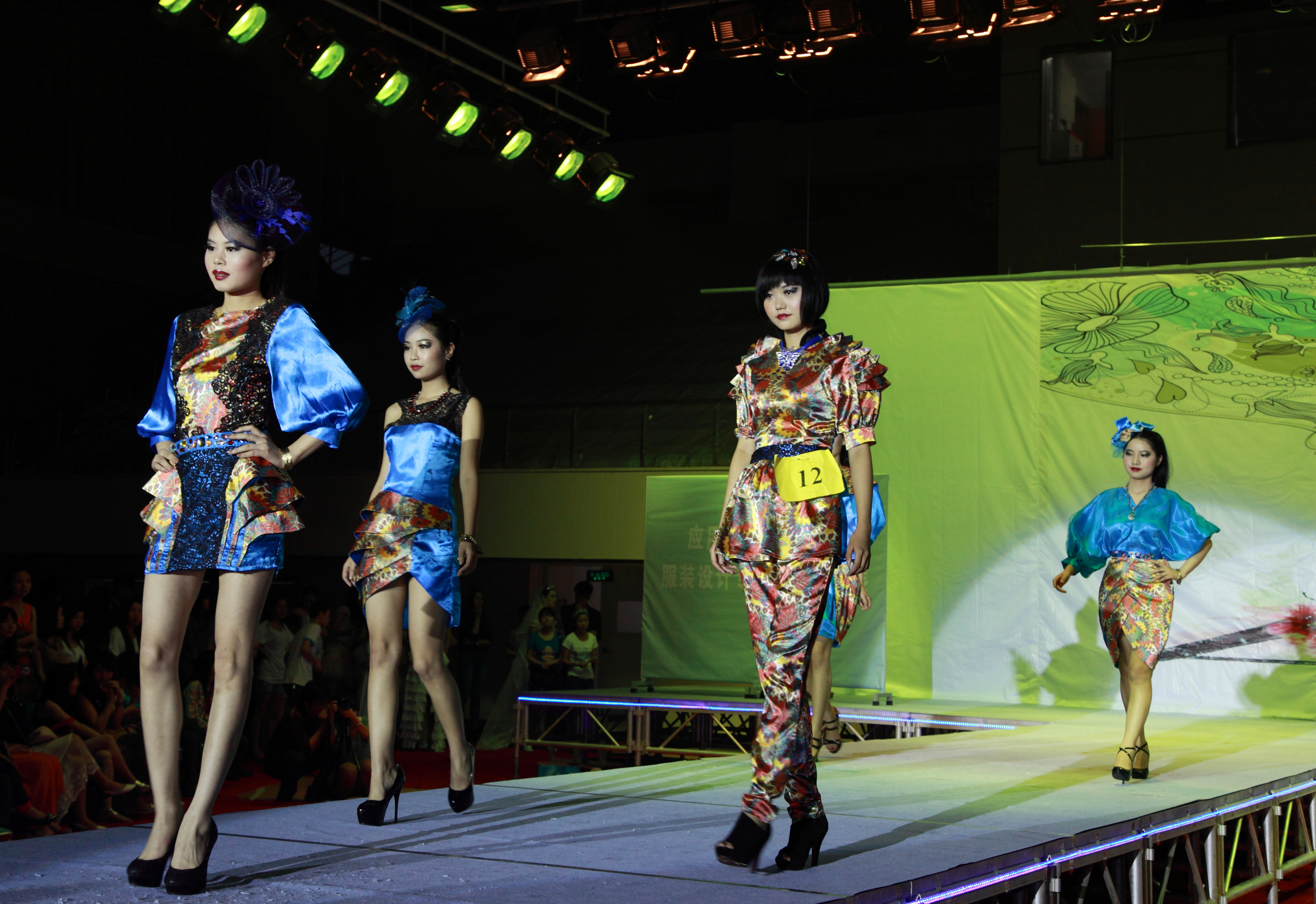 整个现场俨如一场时装秀,校内外众多摄影爱好者也争相拍摄。经过近两个小时的展出,学生龙圆娇的“布落格”和杨盼的“繁花似锦”获得了第一名。