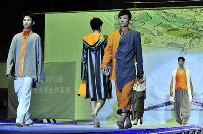 据悉,此次服装展作品出自应用艺术系2012届服装设计专业23名学生。从今年3月开始筹备,在专业老师的指导下设计完成,展示的有繁花似锦、民族调、行者•布法等23个系列百余件服装。