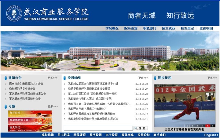 本网讯8月31日,我校网站全新改版,以崭新的面貌出现在大家面前。改版后的校园网以我校标准蓝为底色,对内容版块进行了适当调整,布局简约大气,风格秀雅俊朗。网址http://www.whcsc.edu.cn/。
