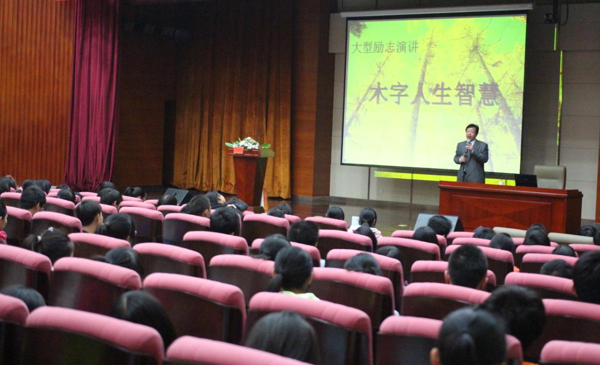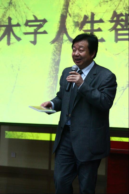 演讲在向学生的提问中开始,蔡顺华形象贴切的比喻一下子吸引了听众的兴趣。他说,中国有句古话“十年树木,百年树人”,“木”与“人”联系紧密。在“木”字上面加上一笔变成不同的字,蕴函了人生不同的境遇和结局。