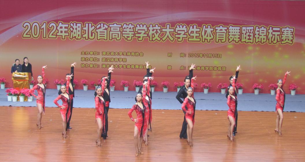 我校体育舞蹈队一直是湖北省高校体育舞蹈队中的“王牌”队伍。在本次比赛中,他们淋漓精致地展现出“青春、靓丽、高雅”的特点,激情高涨的表演,获得了全场观众的热烈掌声。