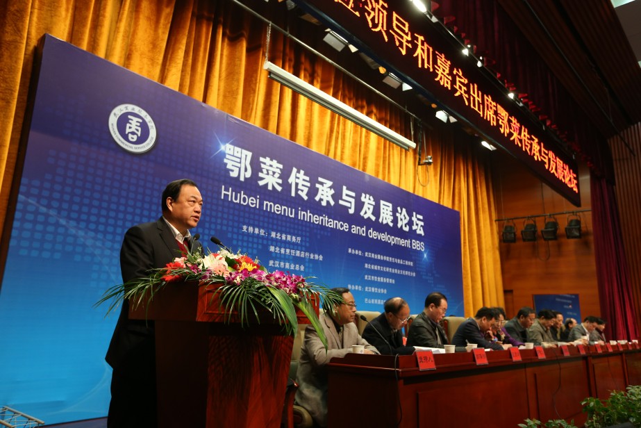 本网讯 11月29日,由我校与武汉市商务局、武汉商业总会联合举办的鄂菜大型理论研讨、交流盛会“鄂菜传承与发展论坛”在校图书馆报告厅开幕。这是我省首次举行的鄂菜论坛。