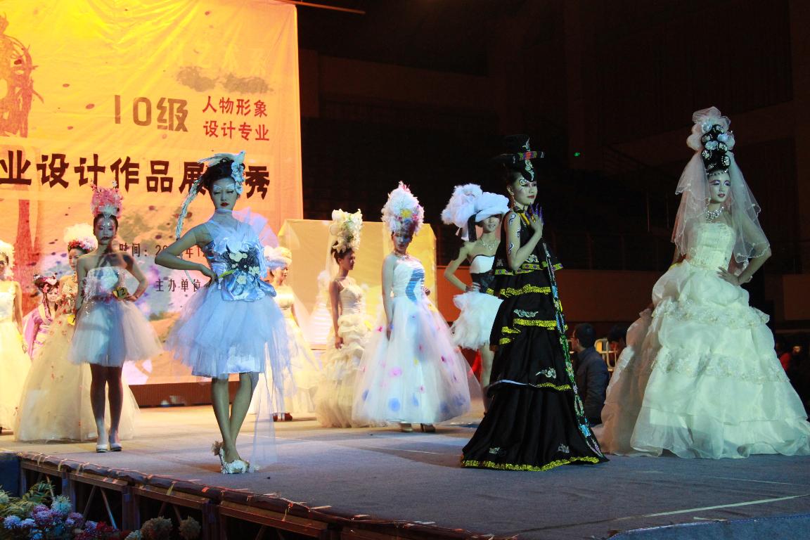 当天的毕业作品展示会,共展示了26套服装,有婚纱、少数民族服装等,学生既是设计师,又是模特。毕业生打破传统设计理念,尽情地秀了一把。