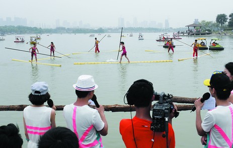 学生制作纸船横渡长江,中央电视台来校采访、报道。