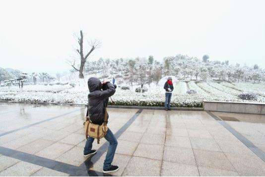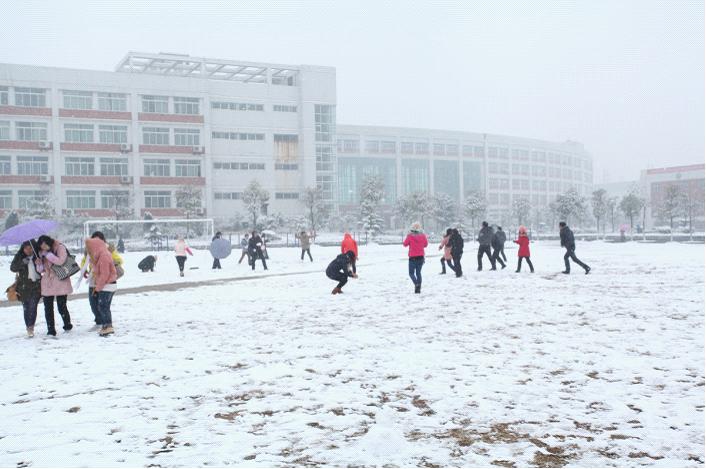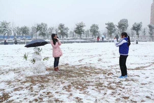 本网讯 25日晚,武汉迎来今冬第一场雪,今天(26日)早上,校园内已是一片银装素裹。空中飘零的雪花漂进鹤鸣湖、落在草坪上,一点点装点着校园。赏雪、玩雪的学生们顾不上天寒,围巾帽子带上身,全副武装地出动了。足球场上、致远广场中、毓山脚下,堆雪人、打雪仗、与雪合影,学子们玩得不亦乐乎。