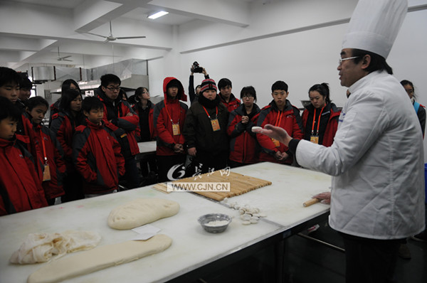 学生们听厨艺大师讲解(摄影:赵磊)