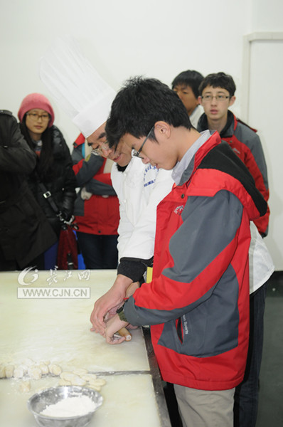 (长江网i新闻记者马秀梅)一条新鲜鳜鱼,在鱼身打上十字花刀,放入油锅炸成金黄色,起锅装盘浇上番茄汁……1月4日下午,武汉商业服务学院烹饪与食品工程学院实训室内,三个操着英语的小“主厨”将花了两小时学会的茄汁菊花鱼端到了中国烹饪大师戴涛的桌前,等待他的点评。