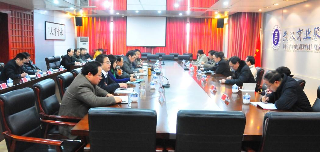 本网讯 1月21日下午,我校党委中心学习组与江汉大学党委中心学习组在武汉商业服务学院进行理论联学。两校党委中心组的同志以贯彻落实党的十八大精神,服务武汉国家中心城市建设,促进地方经济社会发展为主题,展开学习、研讨和交流,共谋合作发展。联学收到了预期效果。