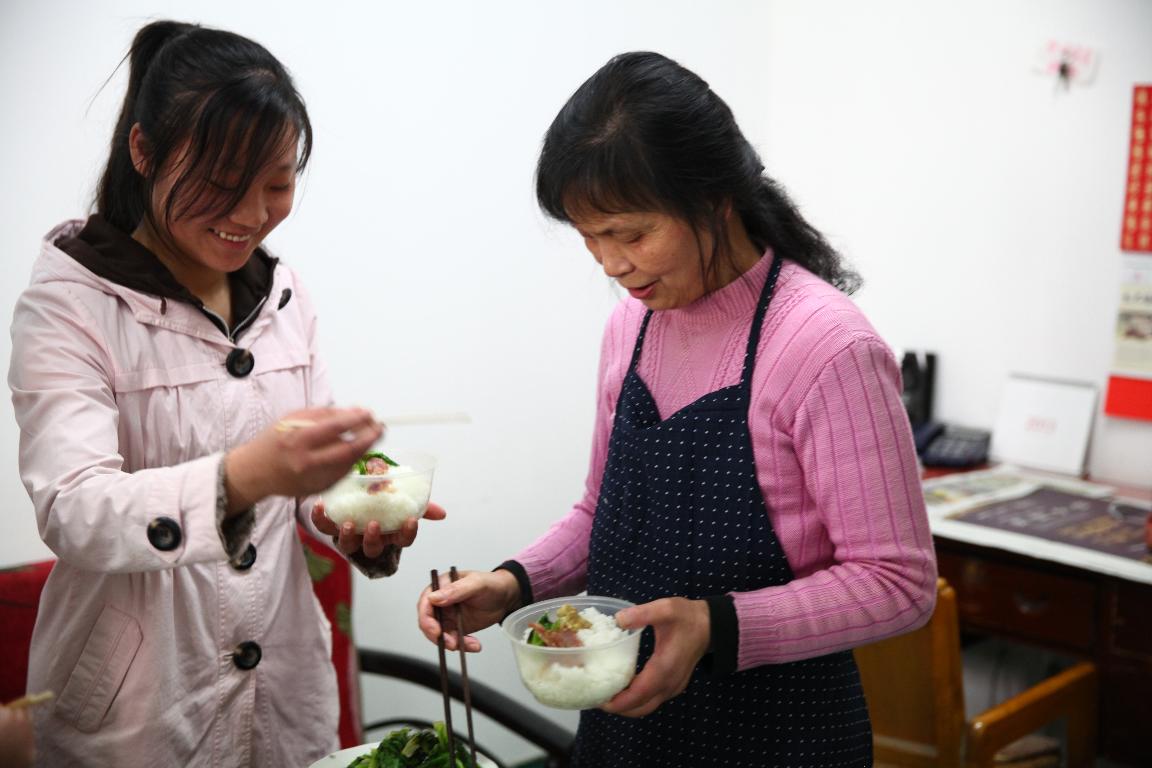 赵梅记得陈金艳阿姨在做“爱心餐”是如何“讨”自己欢心的。“第一次吃陈阿姨做的饭,她特地从家里带来的肉丸子,又鲜又香,真好吃。”去年冬天,赵梅受寒感冒,陈阿姨特地煲了排骨汤给她驱寒,还亲自买药给赵梅,督促她多穿衣服。