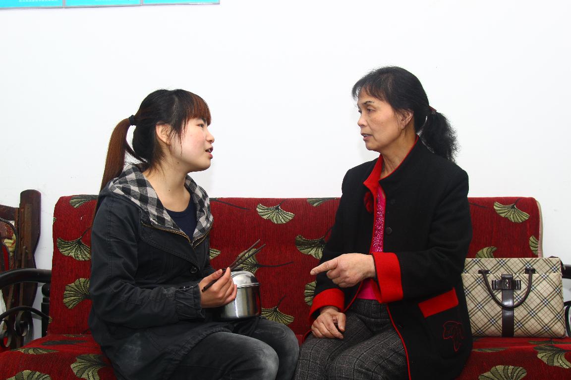 在小小的一张爱心餐桌上,在夹菜添饭之间,“宿管妈妈”帮年轻的女孩子调解室友关系,鼓励勇敢面试,化解兼职纠纷,让她们倍觉温暖。有的女孩子,毕业后还不忘把工作、生活、爱情,在电话里向“妈妈”诉说。更多的时候,她们陪“妈妈”拉家常,手把手地教“妈妈”上网、玩手机。“比我自己的姑娘还耐心”,“妈妈”邹典明如是说。