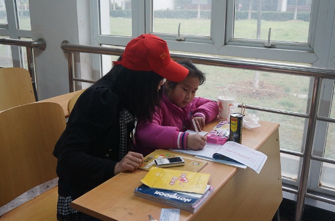2010年到2013年,近100名志愿者累计辅导50余名农民工子女。这是由应用外语系的志愿者们开展“牵手计划——爱心家教”。