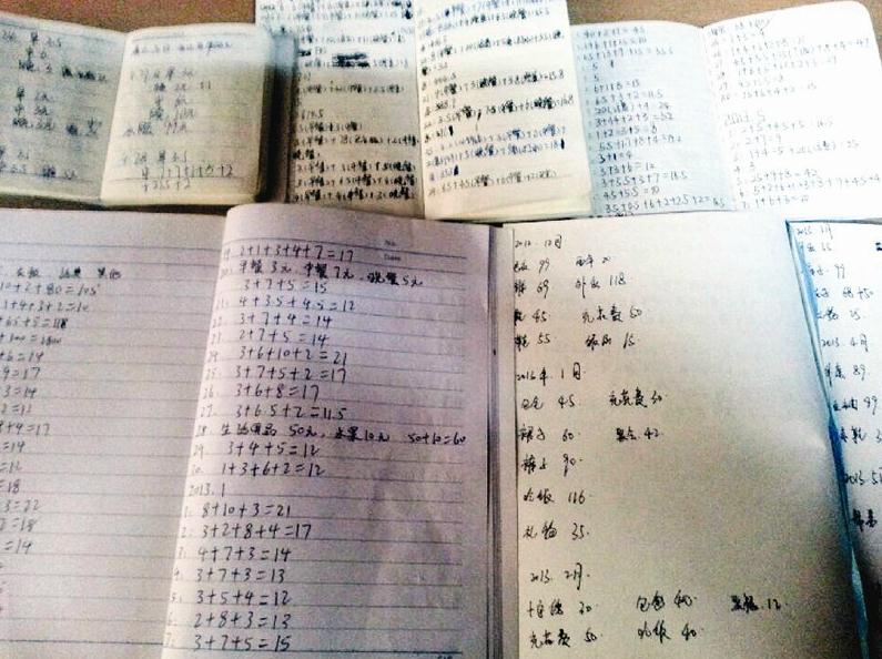 19岁的马文慧披着齐腰长发,长相清秀,她说,“每人每月的生活费都差不多是1000元。大一刚入校时,大家都是第一次离开家,不太会掌握生活开销,有时候百元钞票刚一拆开,不知不觉就没了,到了月底,还得再找家里要钱,怪不好意思的。”“最开始只有我和熊宇芹有记账的习惯,她的记账本只有巴掌大,随身携带,随时记账。寝室另外三位同学看到后,潜移默化被影响了,也开始记账。去年12月,熊宇芹提议,每个月底大家一起晒账本,看谁花钱最多,谁花得最少,相互监督不能乱花钱!大家都觉得这个提议不错也积极响应。”马文慧告诉记者。