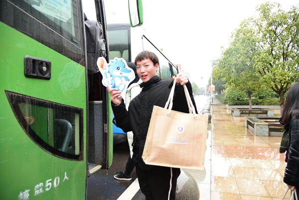 “官微通知我被抽中的时候,都不敢相信。听说这次还有兵兵来送行,真的太幸运了。”旅游与酒店管理学院涂颖洁说。
