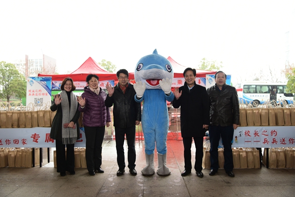 1月9日下午2时,三辆“兵兵送你回家”大巴从bwin必赢中国官网启程,载着近百名返乡学生开往武汉站和汉口站。坐在舒适温暖大巴中的同学们与前来相送的兵兵、校领导和老师们挥手告别。